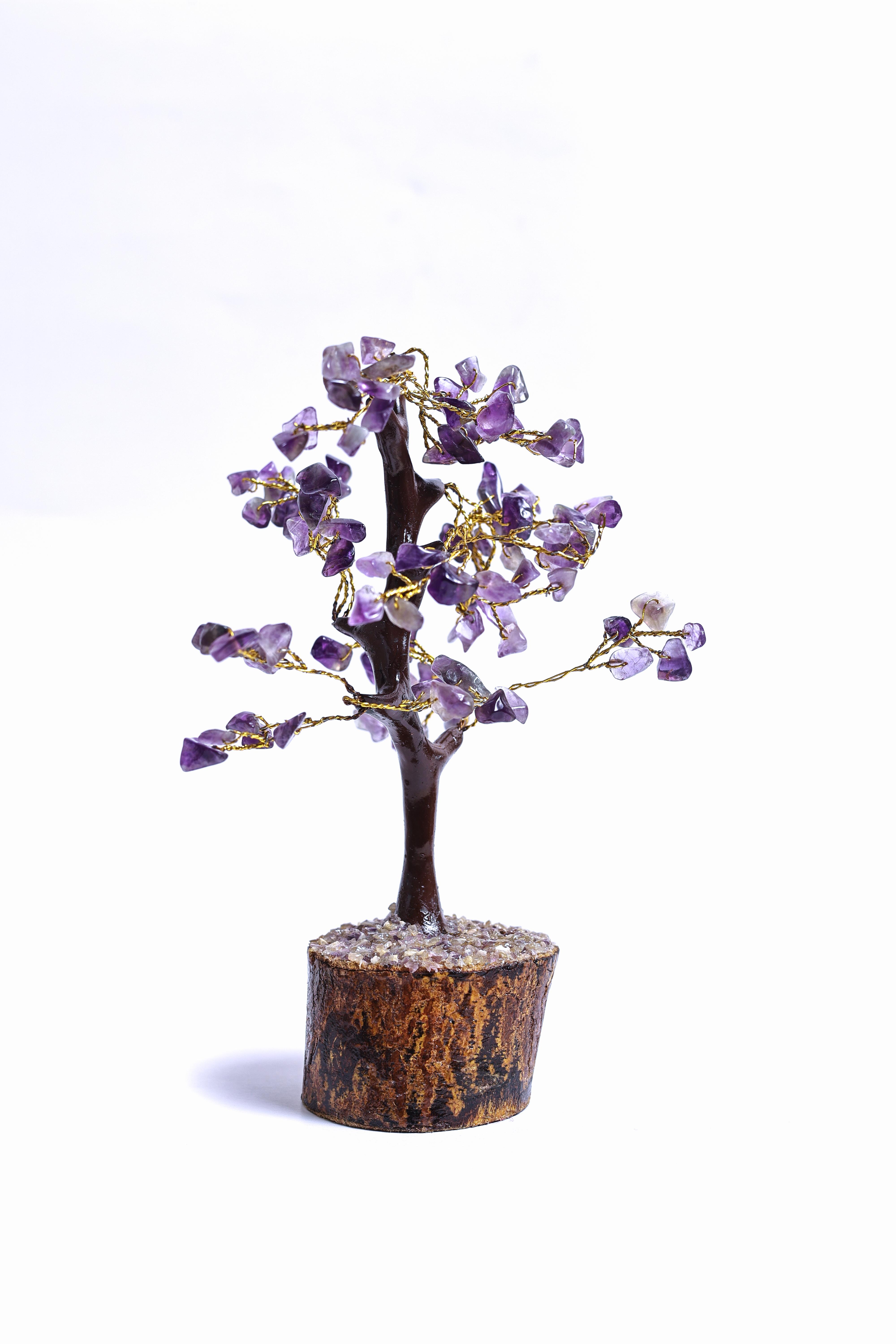 A decorative tree made of natural amethyst chips that calms the mind, enhances intuition, and creates a peaceful spiritual environment.