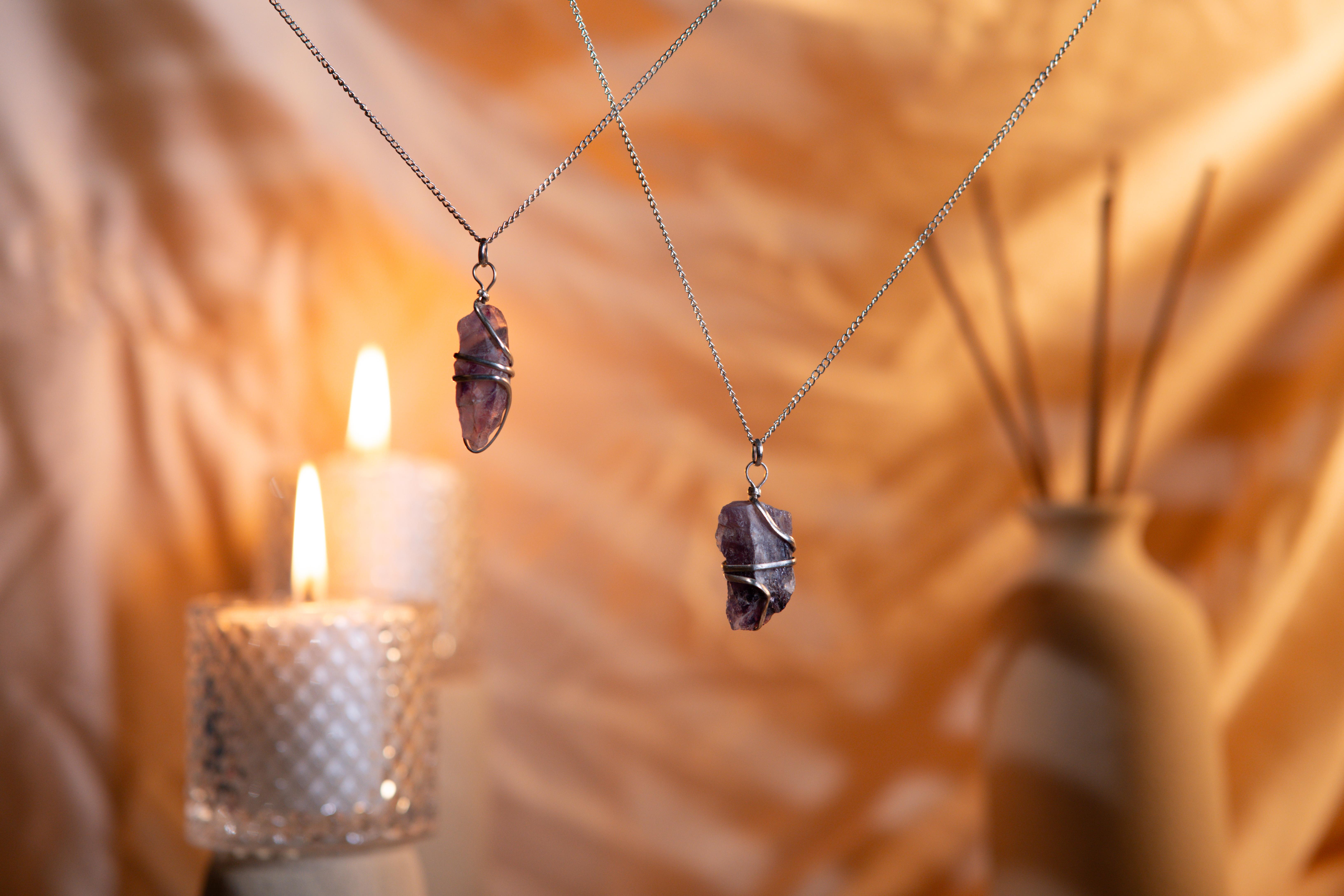 A raw, wire-wrapped pendant blending rustic beauty with powerful spiritual healing, protection, and inner calm.