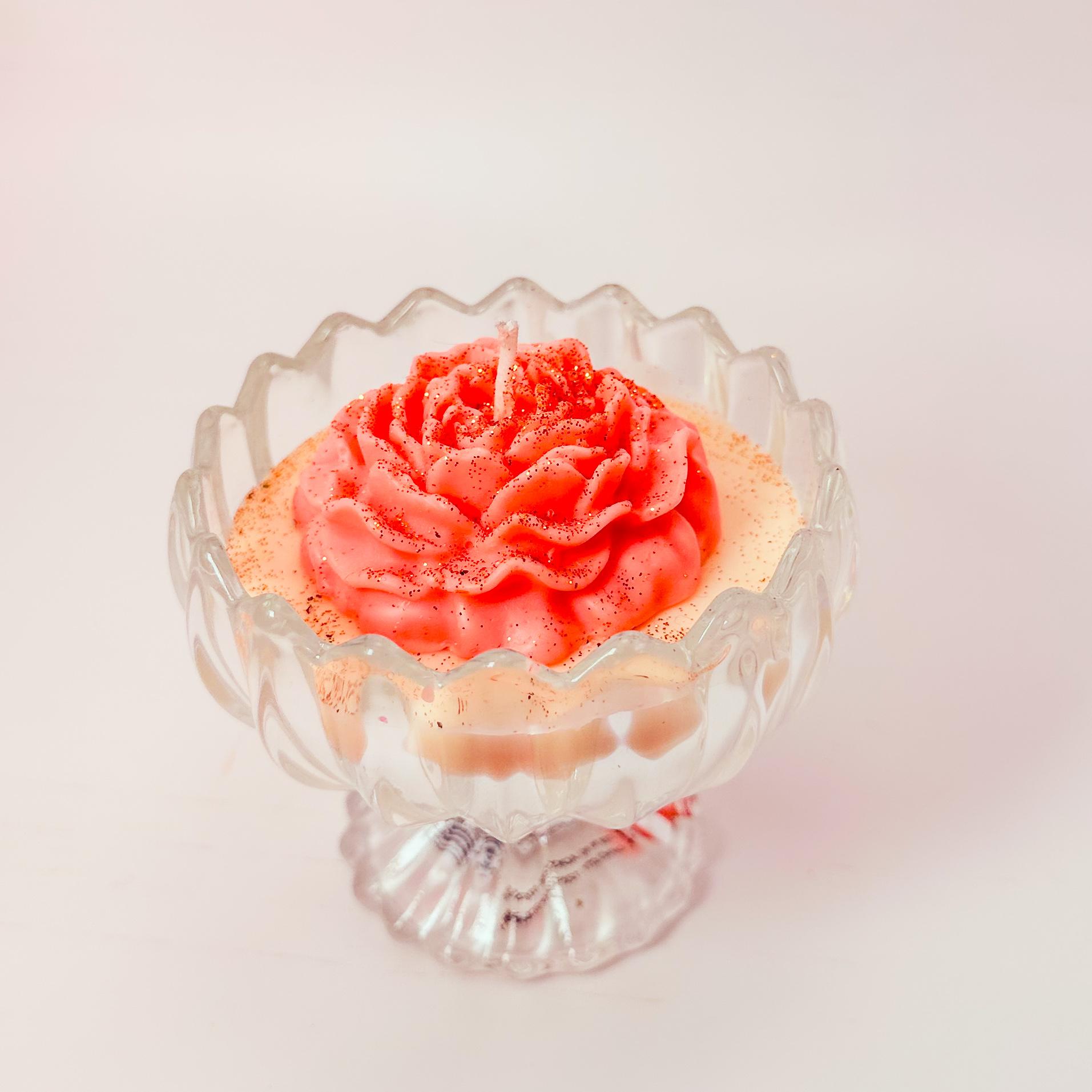 An elegant bowl candle crafted with floral artistry and charm.