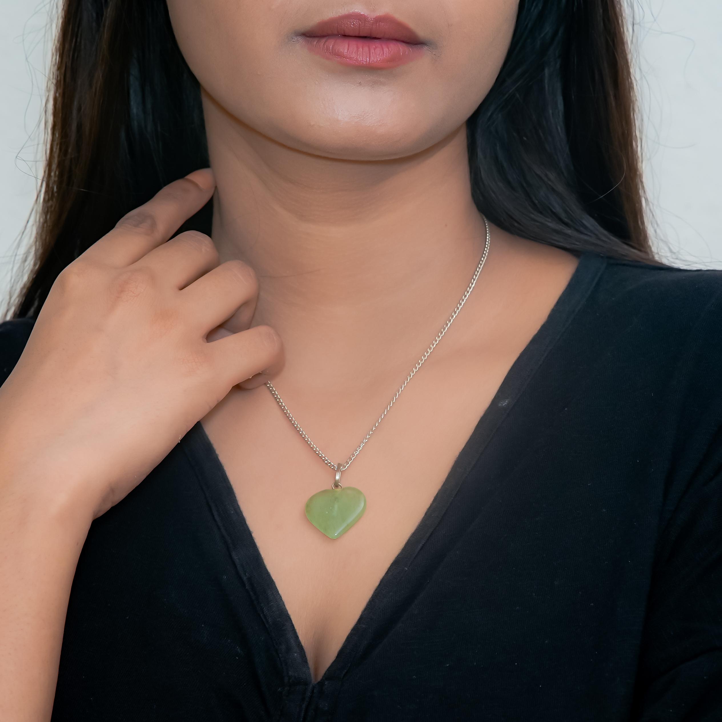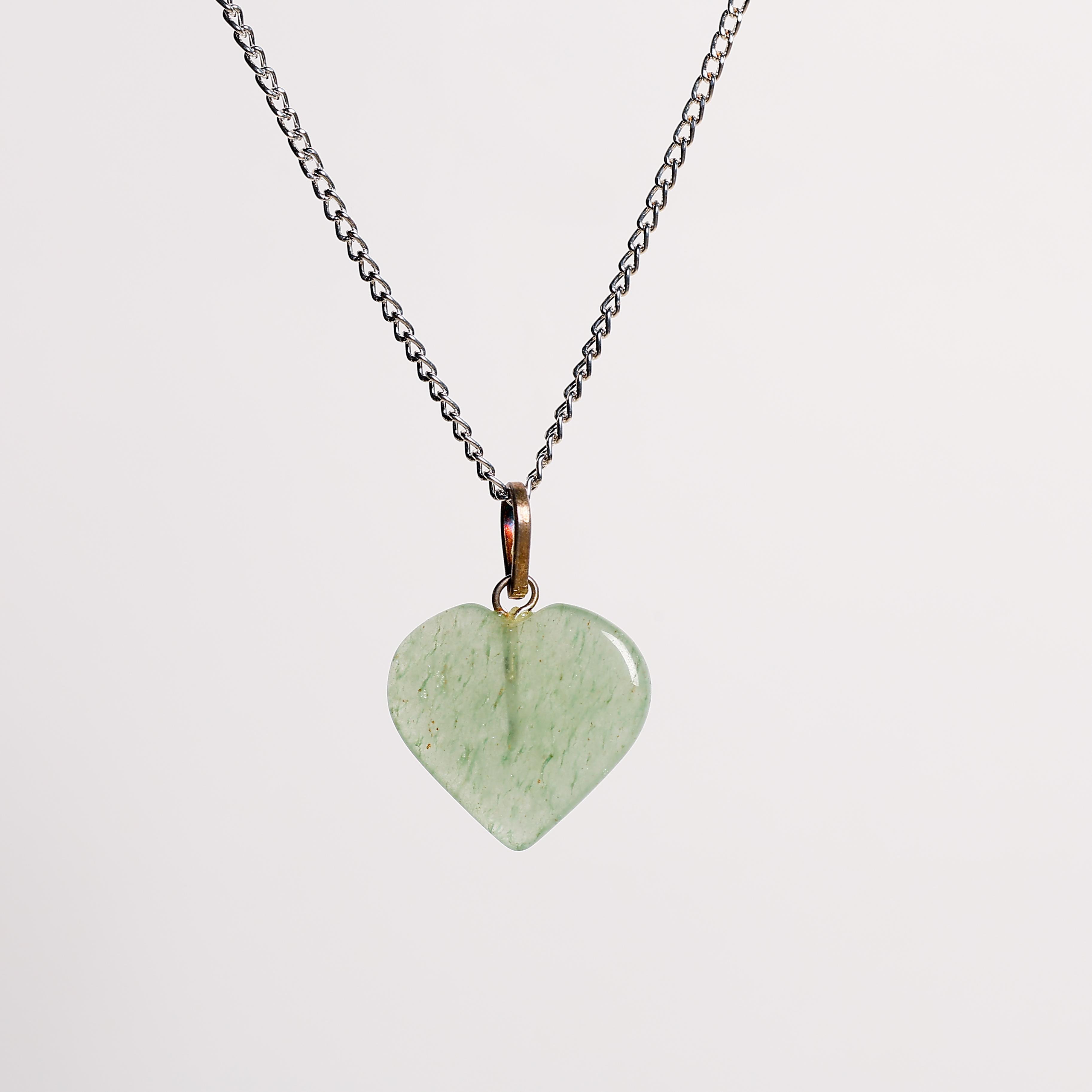 The Green Aventurine Heart Pendant radiates soothing and prosperous energy. Aventurine is celebrated for attracting luck, wealth, and opportunity, while its heart shape enhances love, compassion, and emotional balance. This pendant supports both material success and harmonious relationships, making it a versatile talisman for growth and healing.