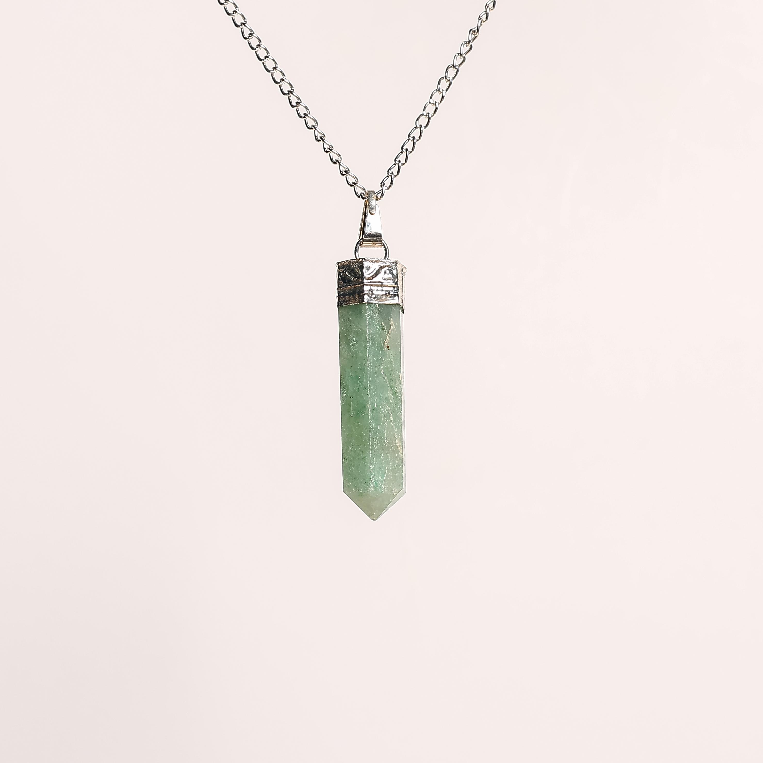 The Green Aventurine Pencil Pendant channels energy for abundance, emotional balance, and healing. Known for attracting opportunity, Aventurine boosts confidence, reduces stress, and enhances creativity. Its pencil form directs energy flow, making it excellent for manifestation and meditation.