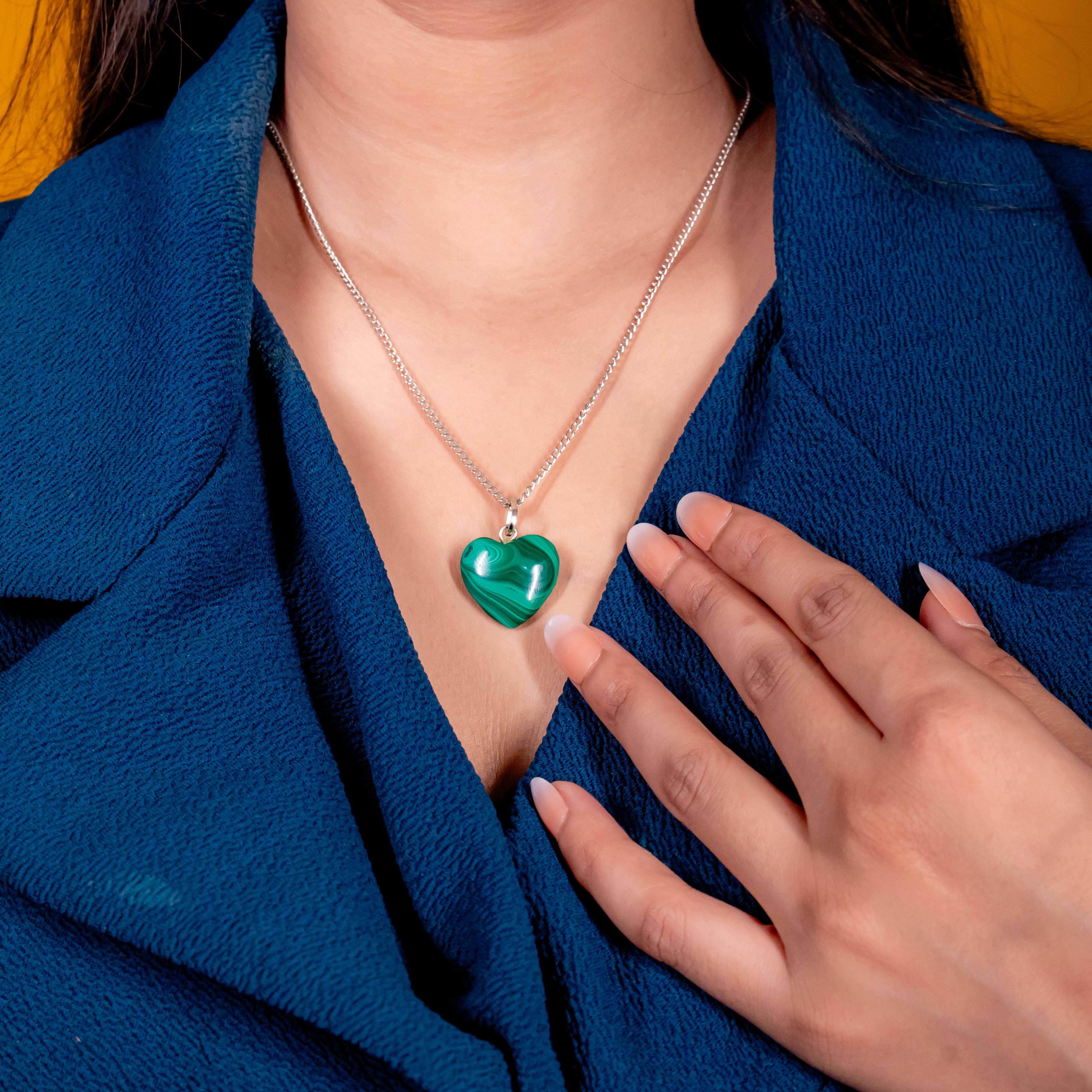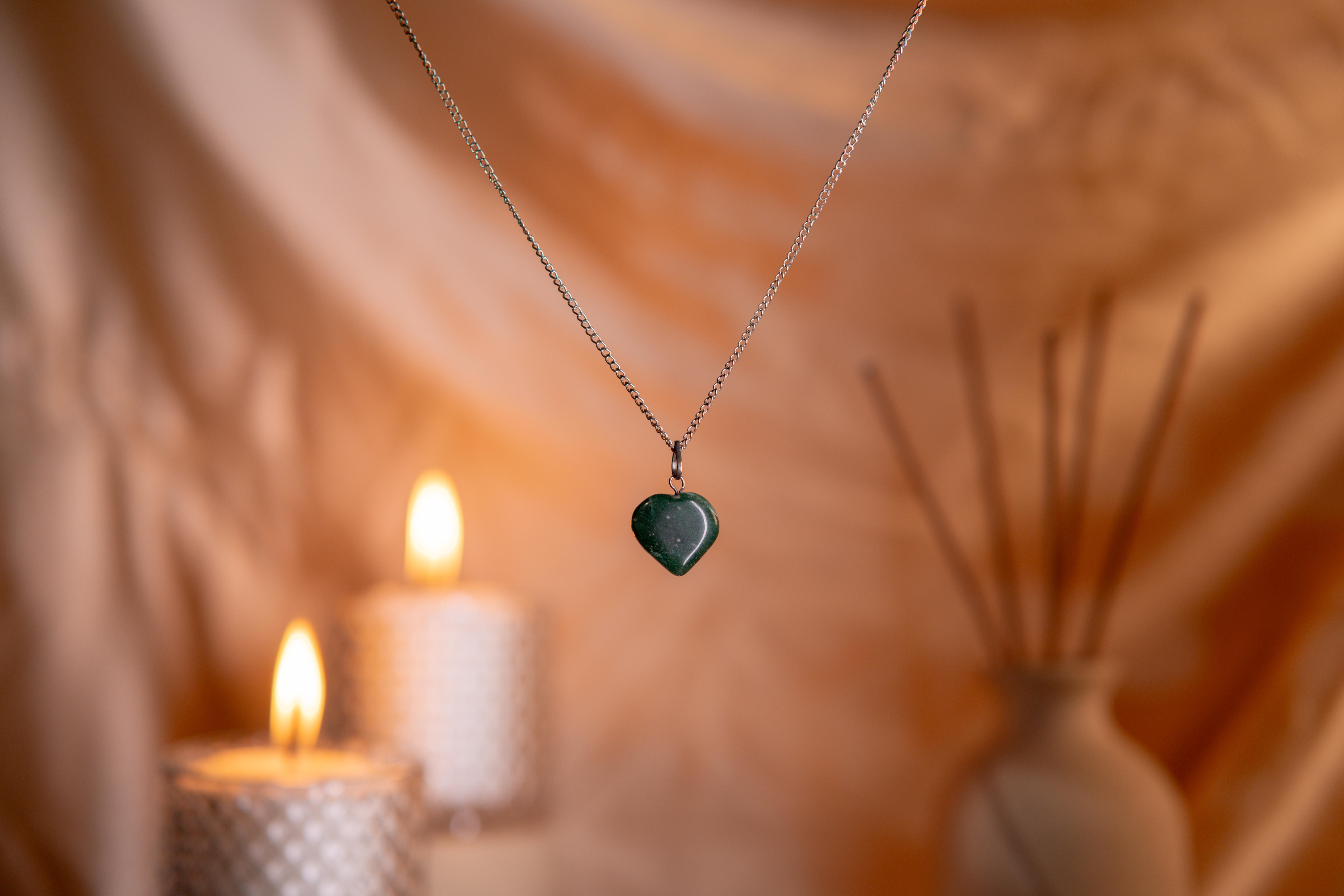A vibrant green heart pendant that protects, heals, and encourages transformation in love and life.