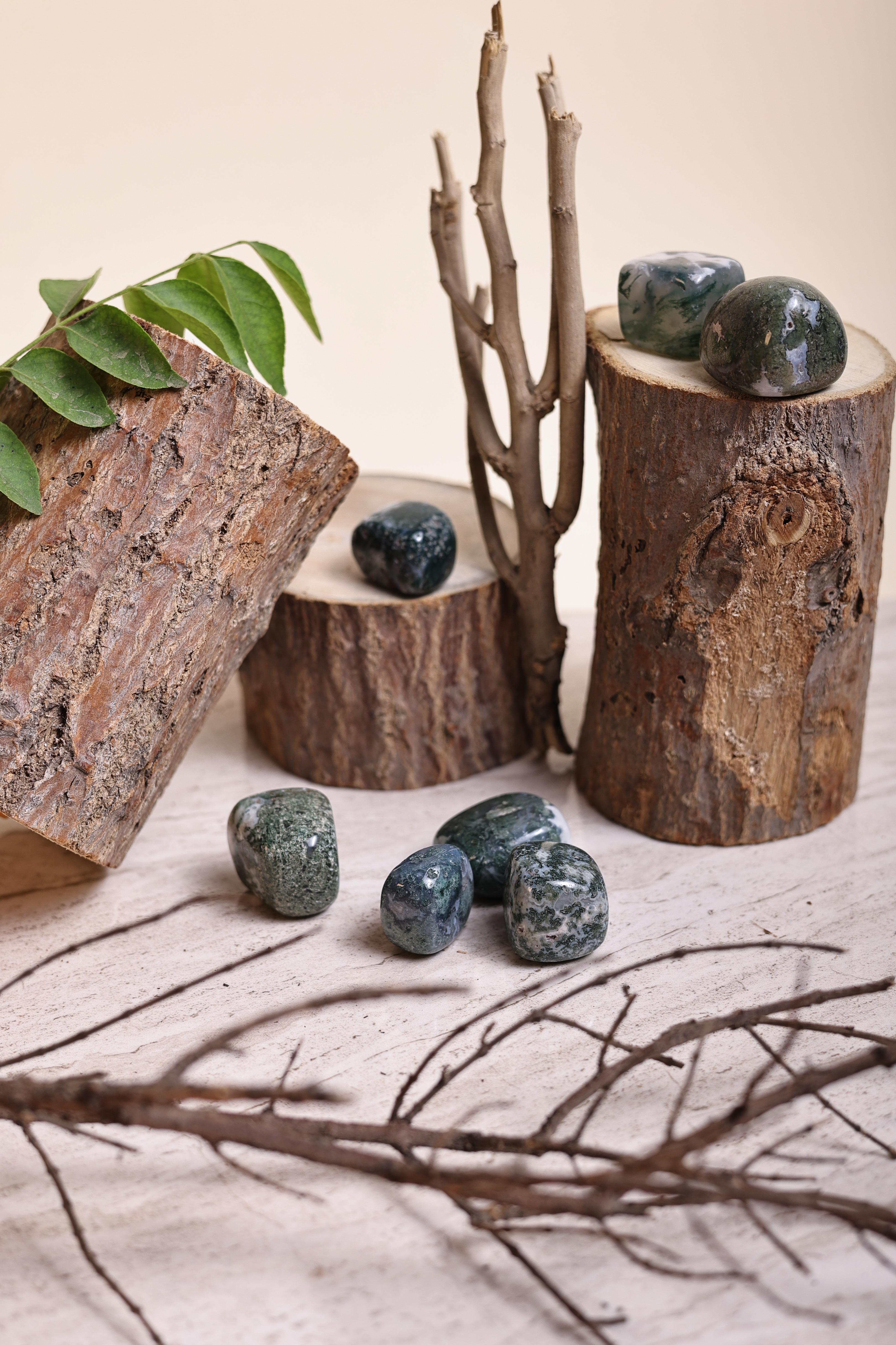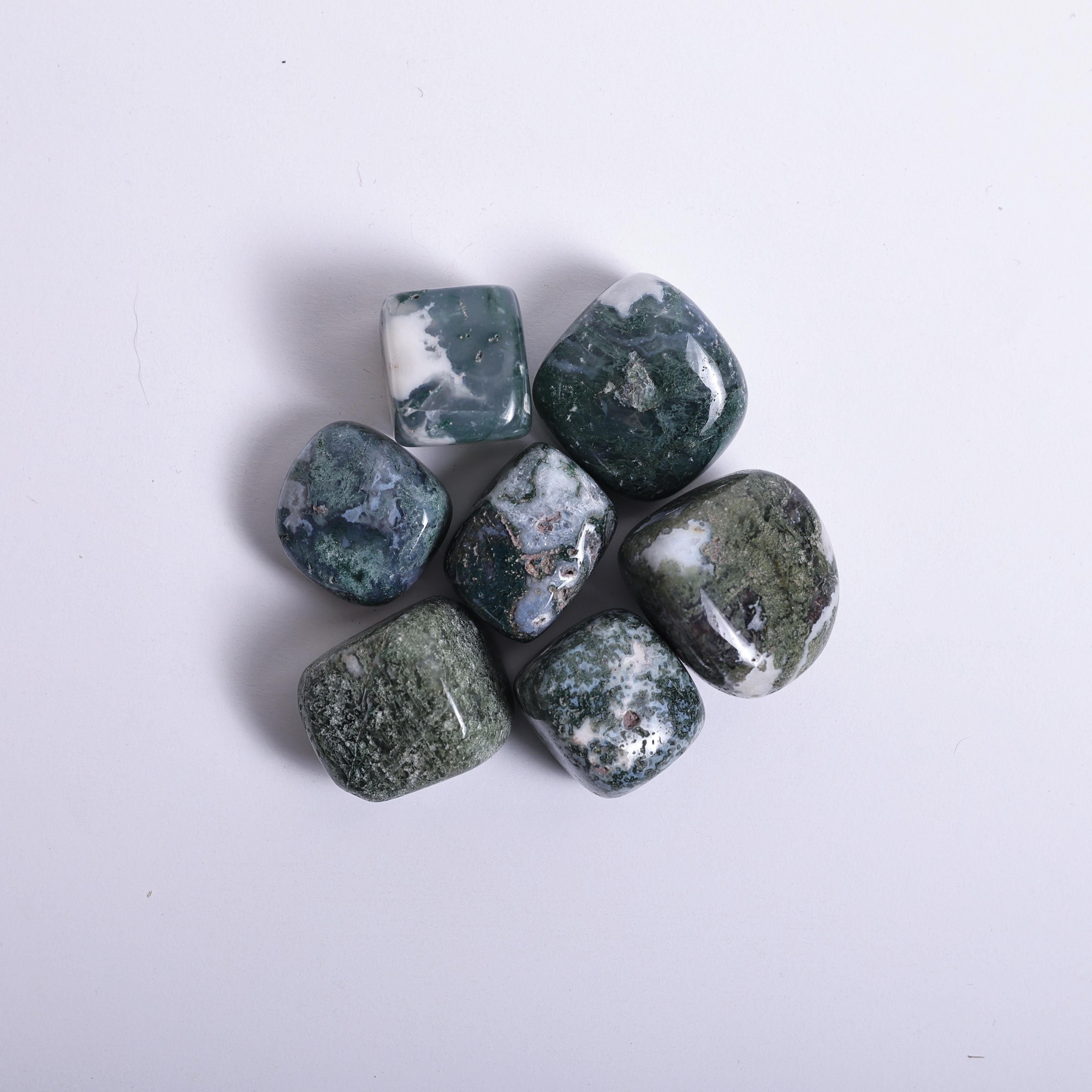 Moss Agate Tumble is often called the “Stone of New Beginnings,” symbolizing growth and harmony with nature. It attracts abundance, enhances grounding, and supports healing from emotional imbalances. With strong connections to the heart chakra, it restores optimism, nurtures self-esteem, and encourages a fresh start in life.