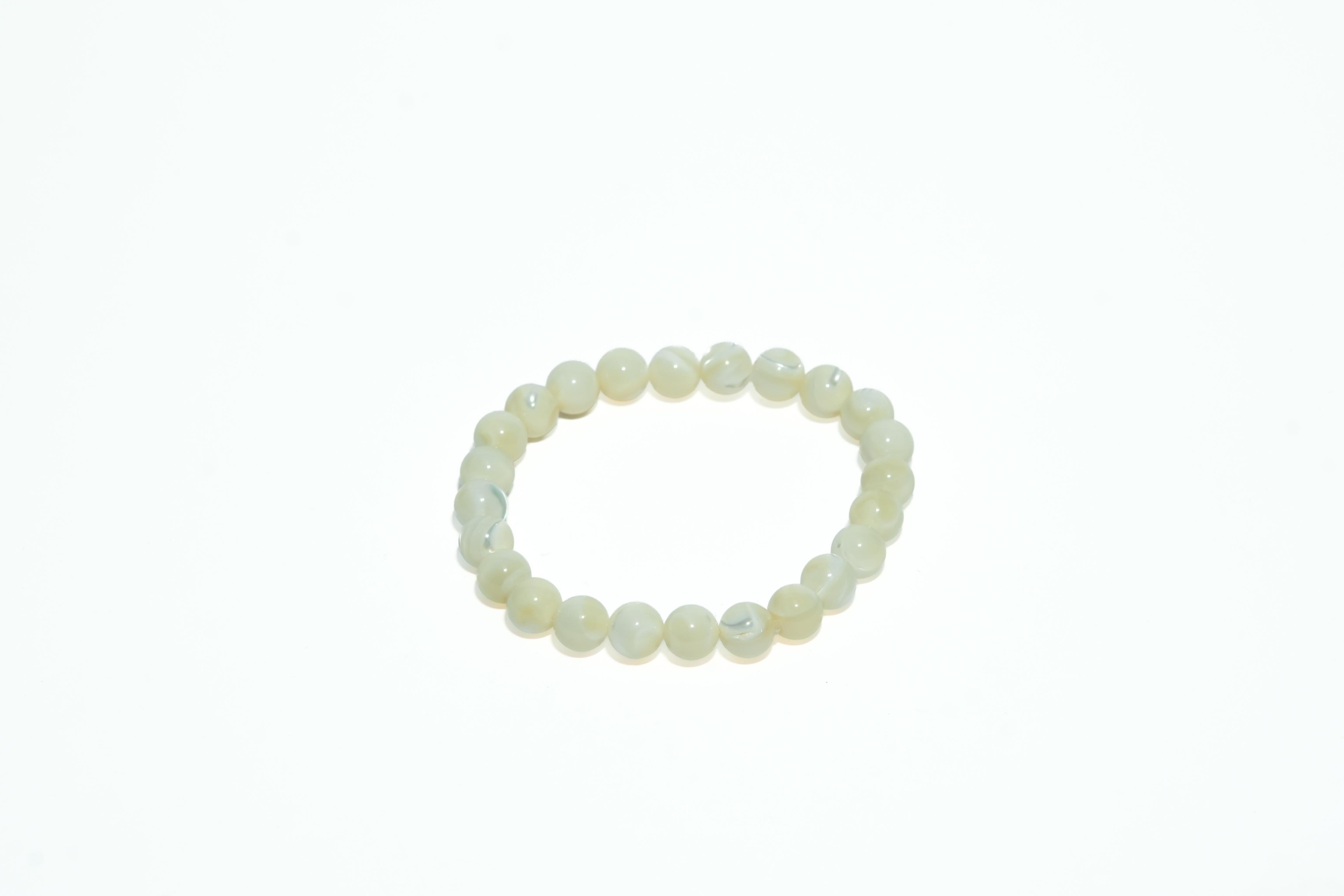 Mother of Pearl embodies the gentle, nurturing energies of the sea. This bracelet promotes calmness, balances emotions, and soothes stress with its soft, iridescent beauty. It enhances intuition, strengthens relationships, and fosters protection against negative influences. Mother of Pearl is associated with prosperity and harmony, making it a perfect companion for emotional healing and balance. Wearing this bracelet invites serenity, love, and a sense of peace, making it ideal for those seeking emotional clarity and spiritual connection.