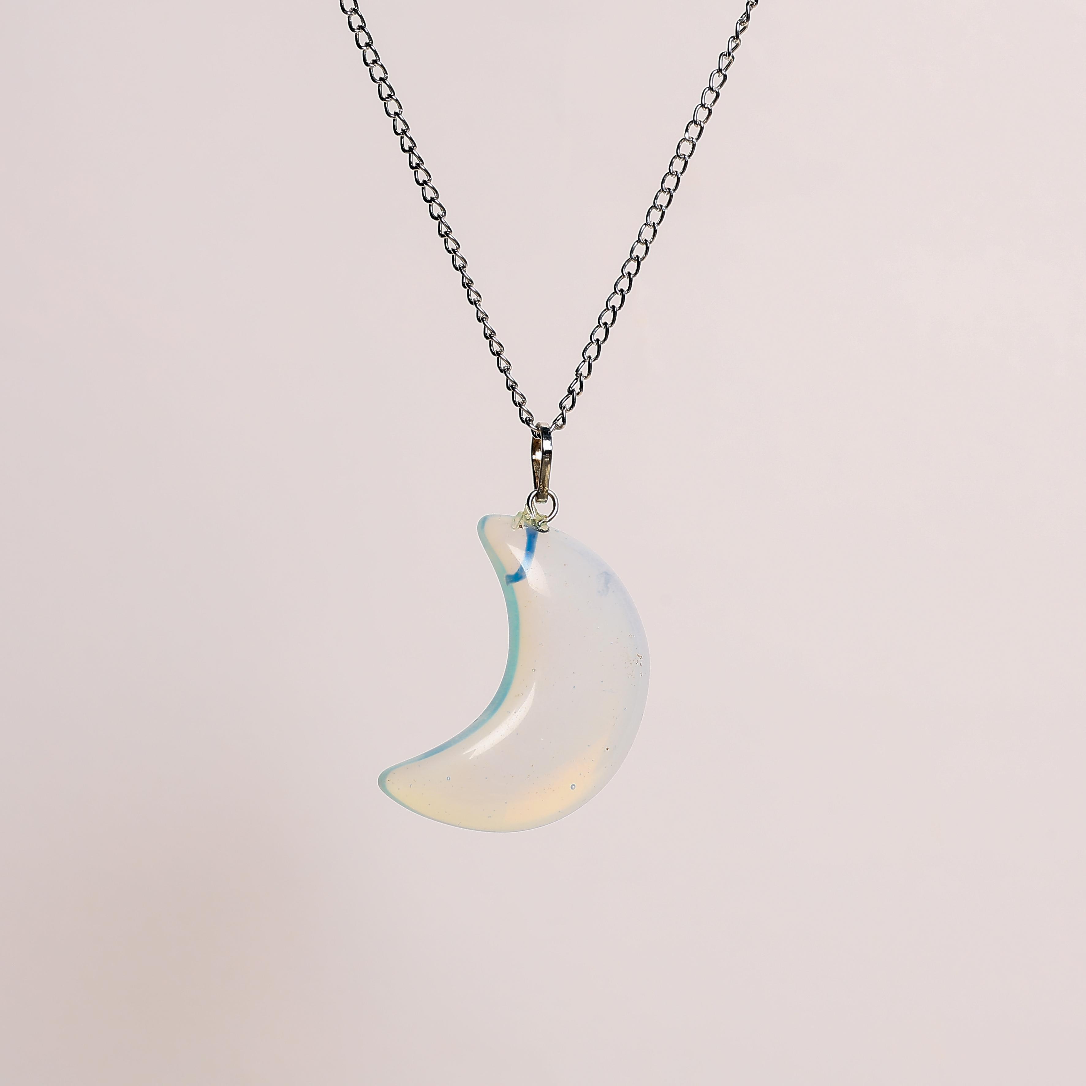The Opalite Moon Pendant reflects the energy of cycles and new beginnings. Opalite enhances communication, balances emotions, and opens pathways to spiritual connection. Shaped as a crescent moon, it represents intuition, renewal, and transformation. This pendant inspires hope, uplifts mood, and encourages trust in life’s natural flow, making it perfect for dreamers, seekers, and those embracing change.