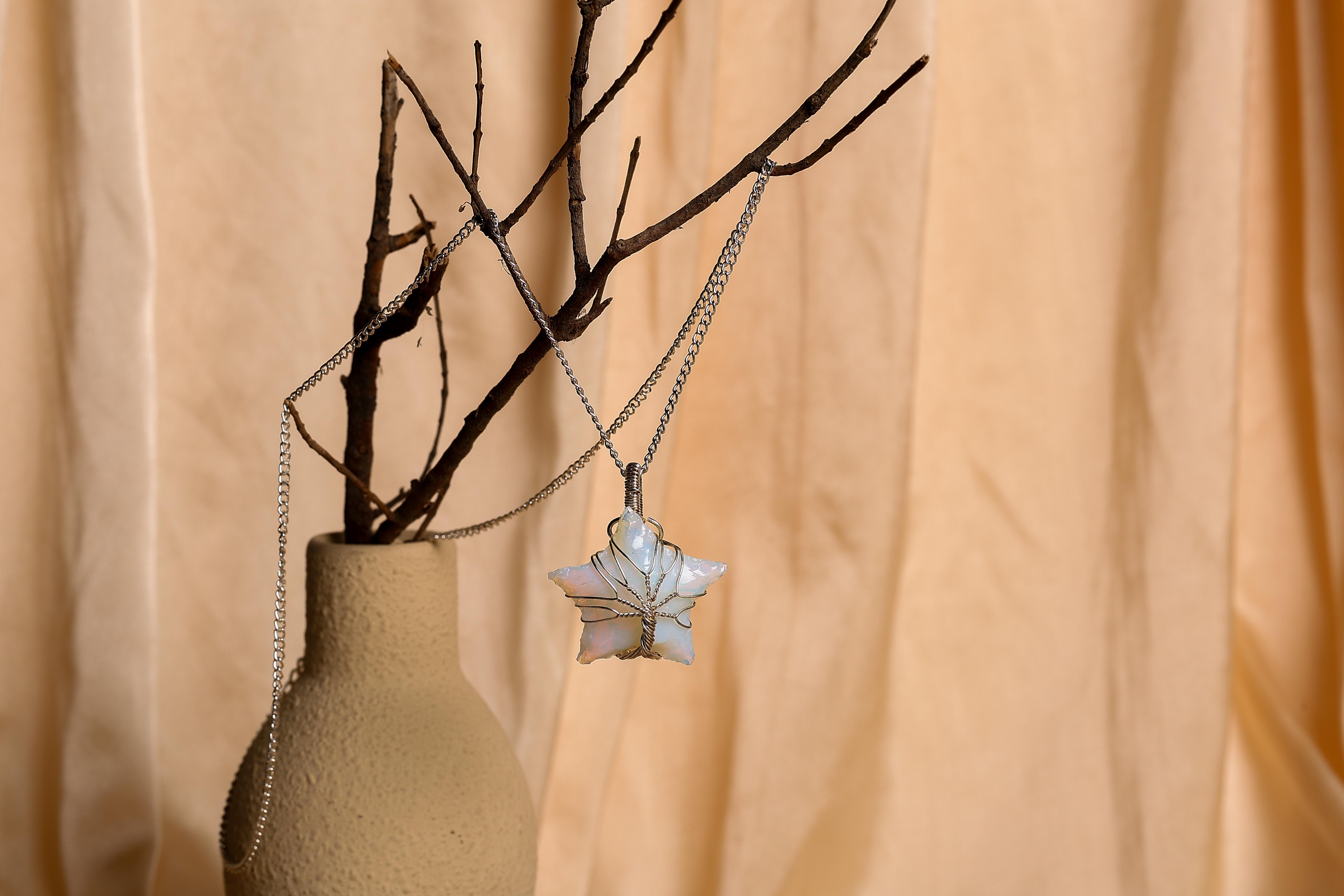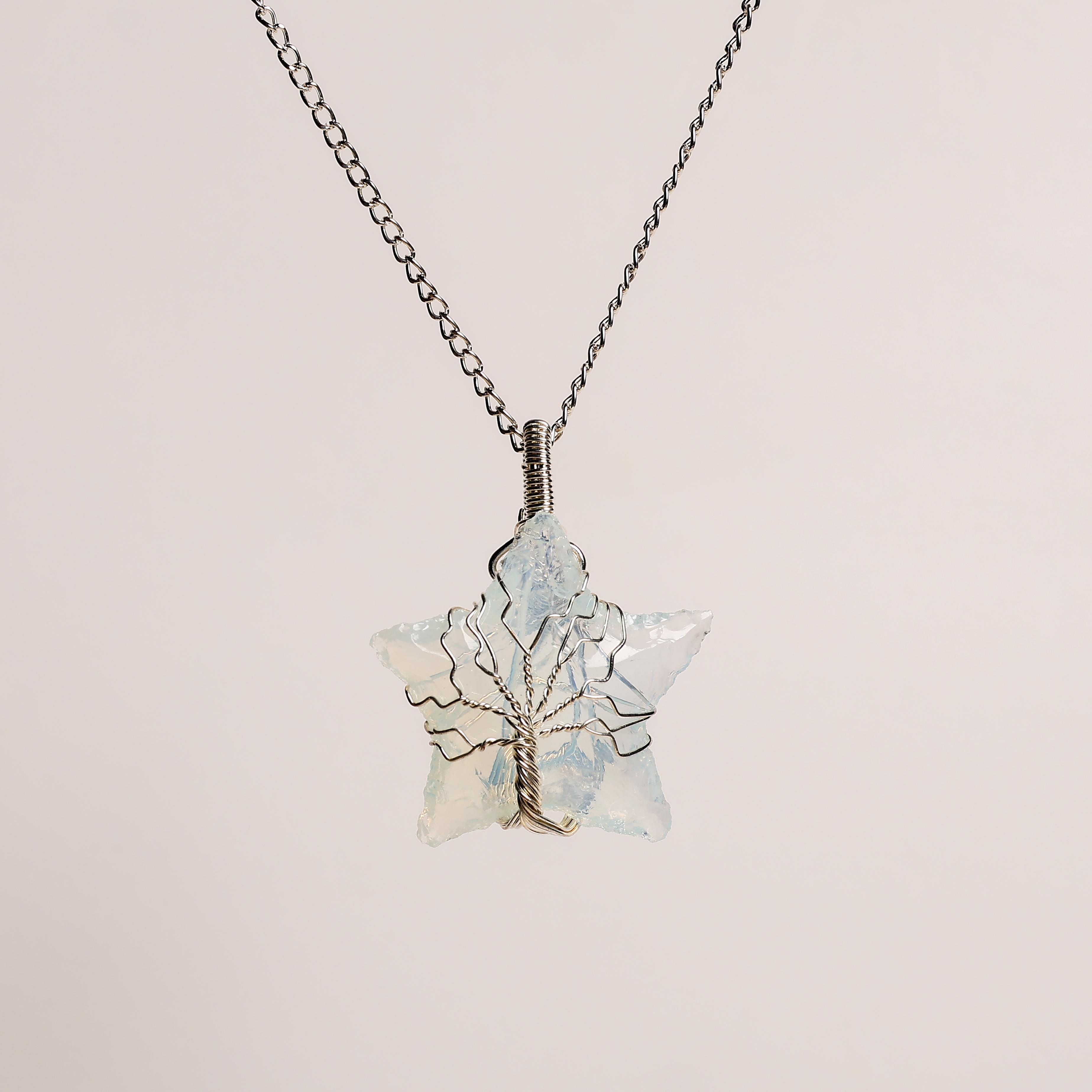 The Opalite Star Pendant symbolizes inspiration, guidance, and positivity. Opalite’s gentle energy supports communication, emotional clarity, and harmony. In the shape of a star, it represents hope, dreams, and higher wisdom, reminding you to shine bright. Its luminous glow uplifts the soul, encourages self-expression, and brings clarity, making it a wonderful pendant for those seeking direction and light.