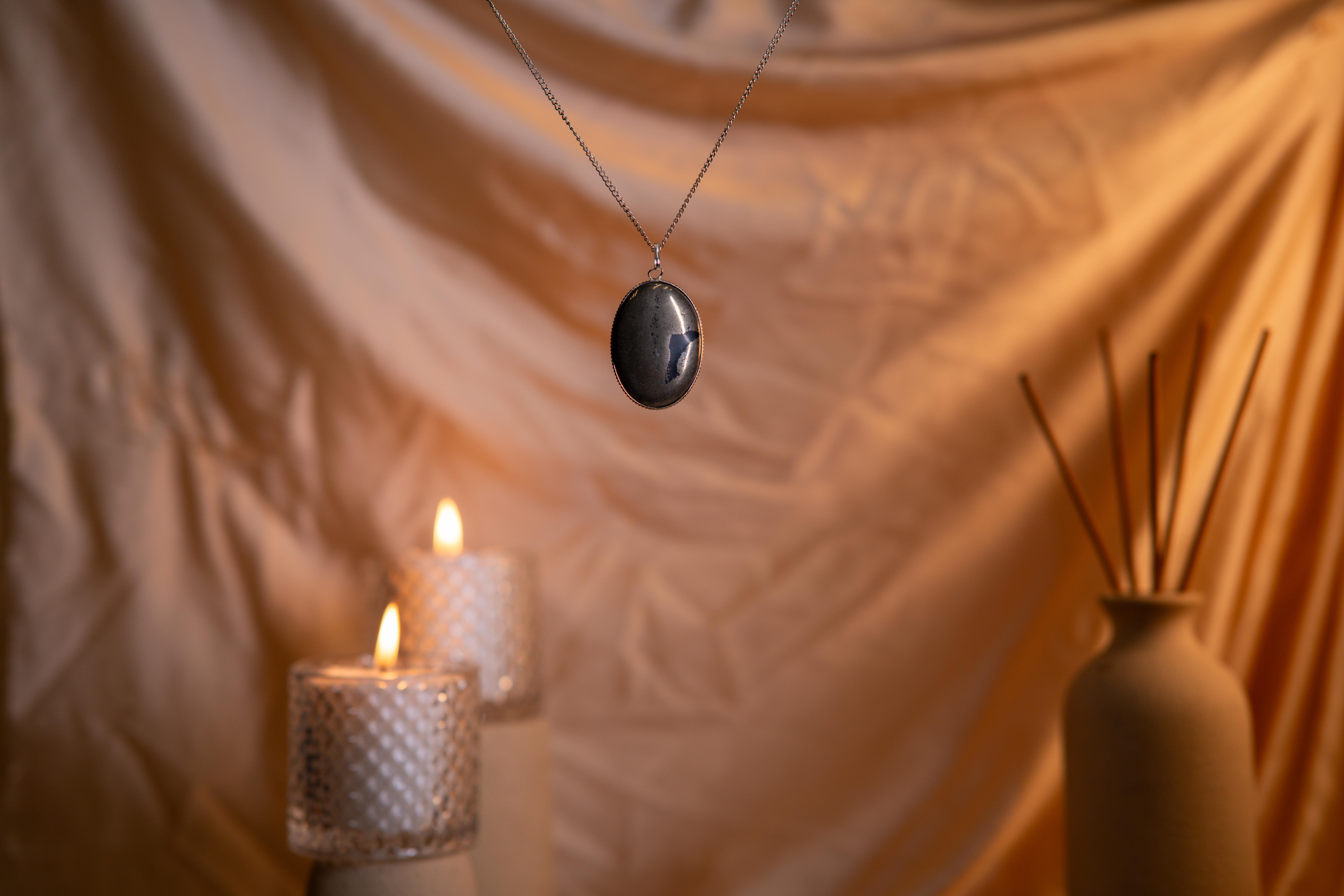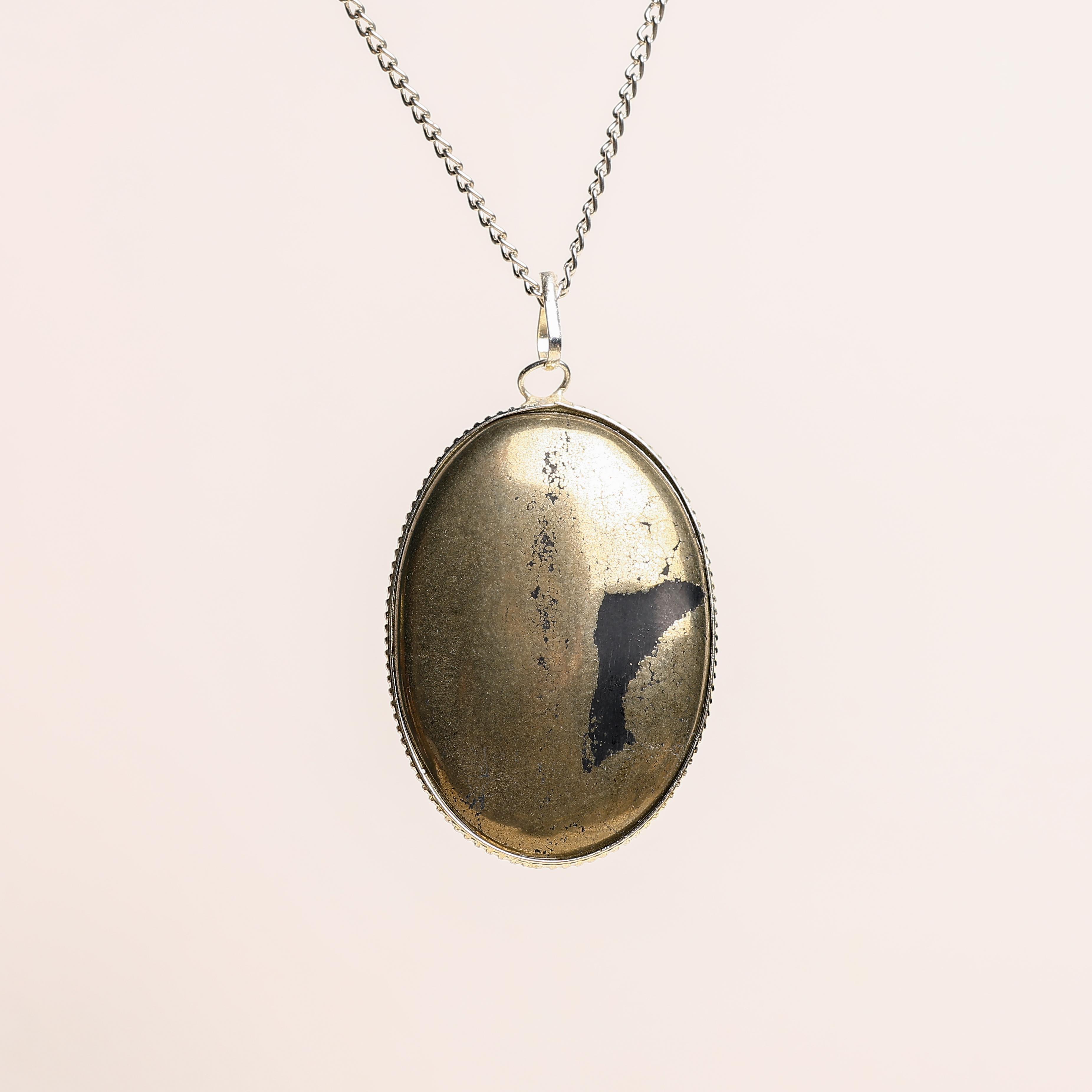 The Pyrite Big Oval Pendant embodies strength and abundance. Known as “Fool’s Gold,” Pyrite attracts wealth, success, and opportunities while shielding against negativity. Its oval shape radiates balance and grounding, making it a powerful talisman for confidence and motivation. Wearing this pendant uplifts energy, sharpens focus, and inspires action, making it ideal for achievers and dreamers alike.