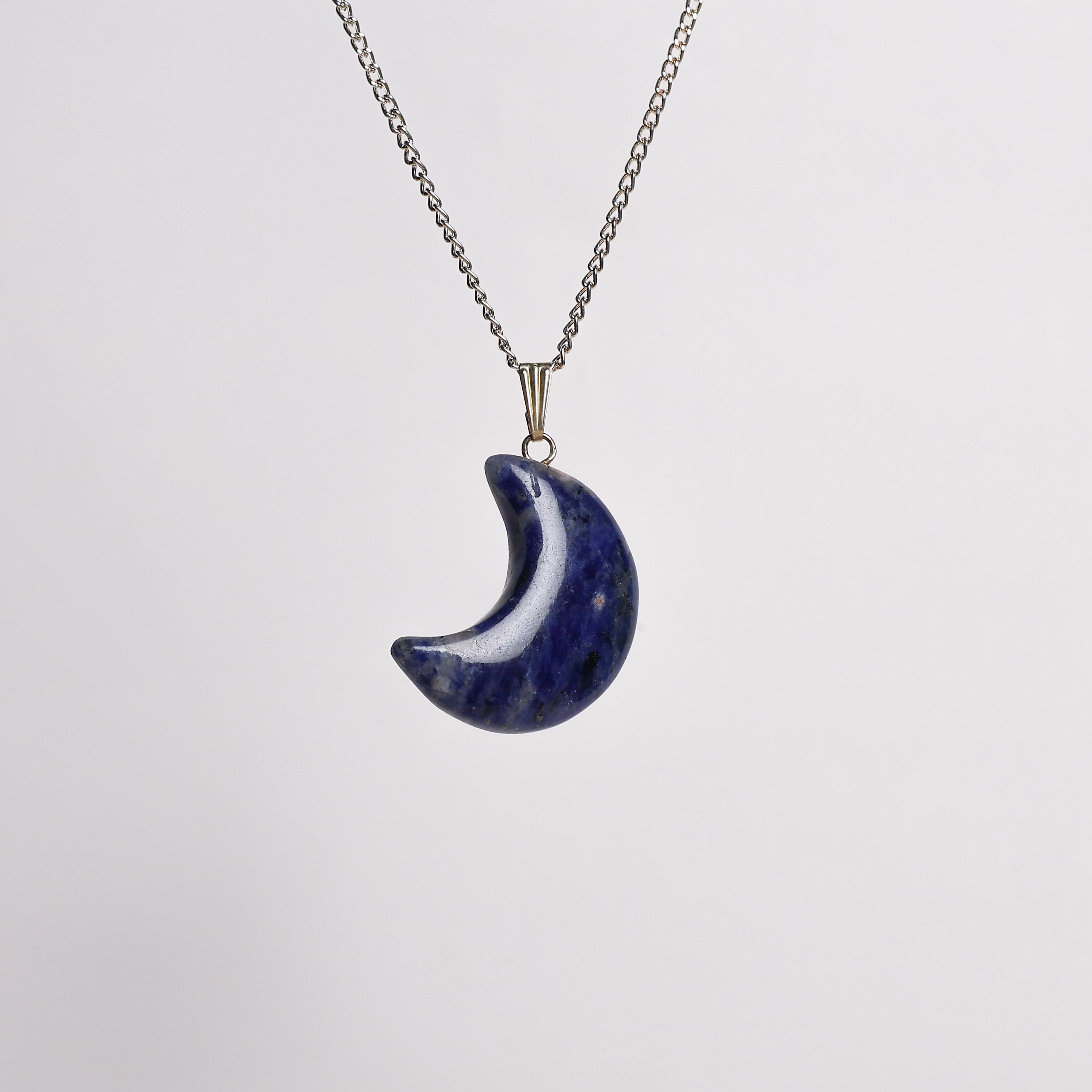 Sodalite Moon Pendant inspires intuition, self-expression, and balance. A crystal of wisdom and truth.