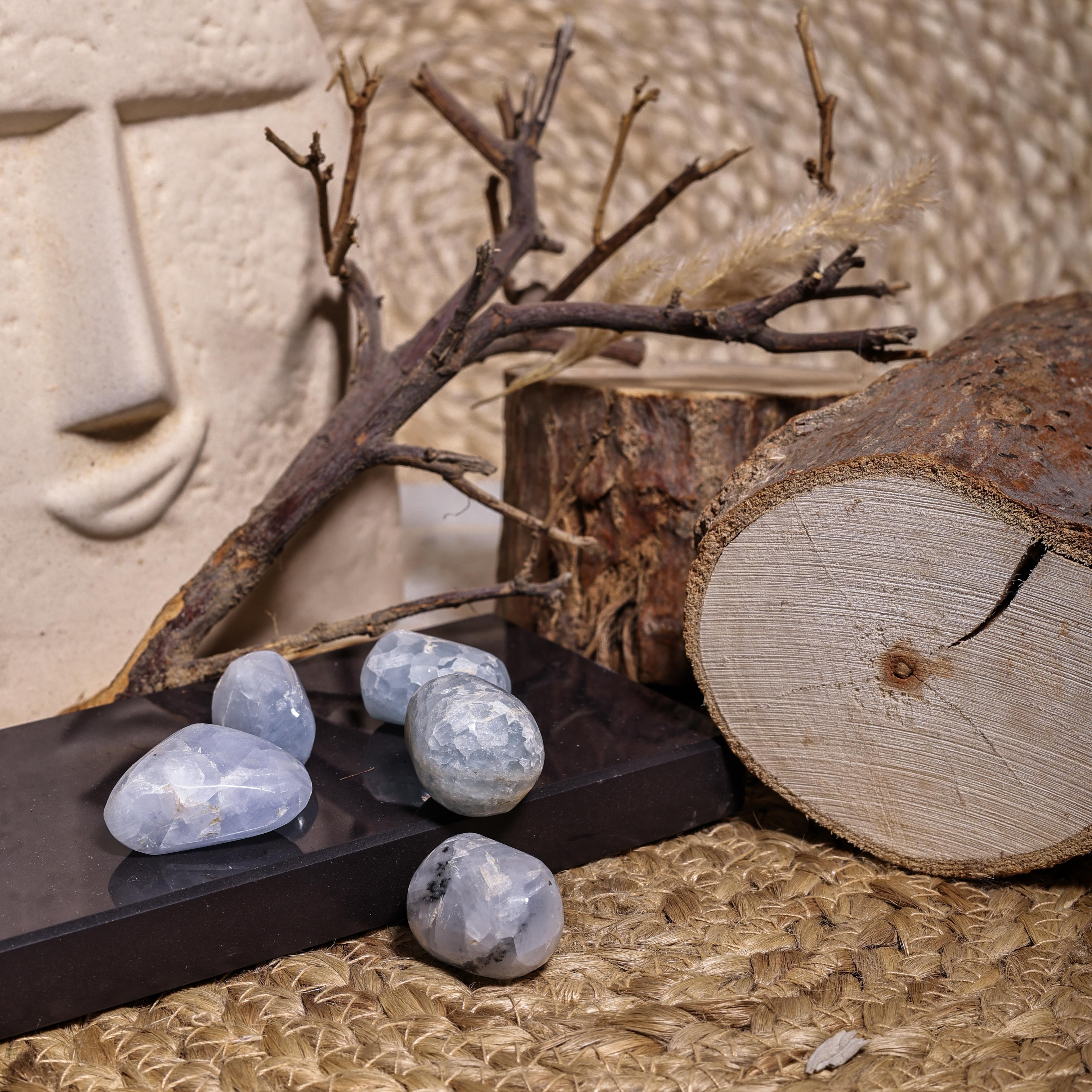 Blue Calcite Tumble carries gentle energy that supports emotional balance, reduces stress, and promotes deep relaxation. Its soft blue vibration resonates with the throat chakra, aiding communication and clarity. Known as a nurturing stone, it enhances intuition, clears negative emotions, and supports recovery. A perfect healing stone for peace, rest, and emotional renewal.