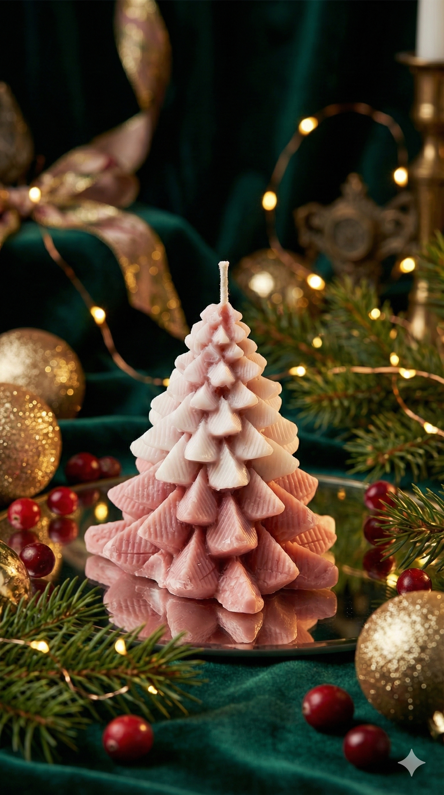 Pink-to-white ombré tree candle that adds a soft, dreamy touch to your Christmas décor.