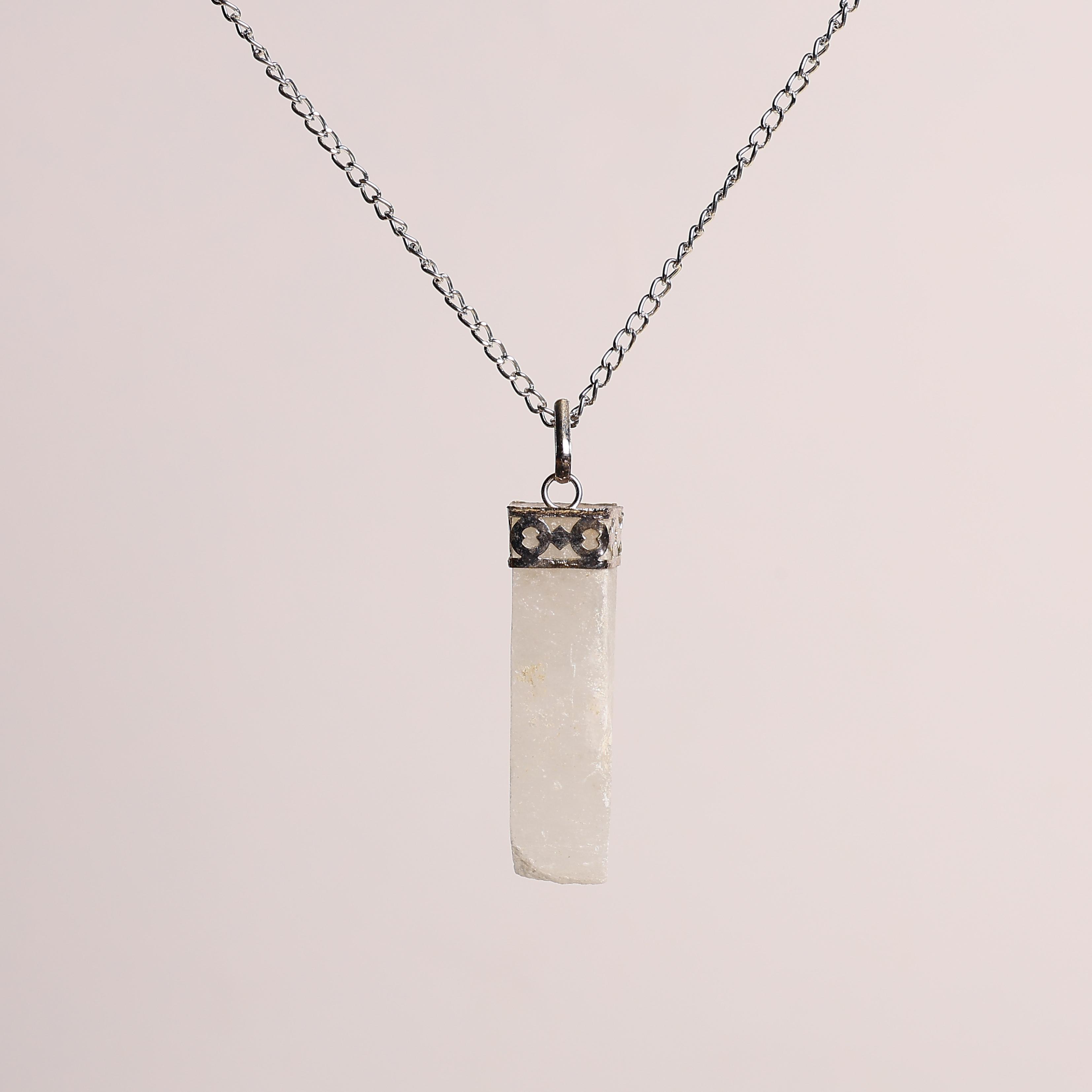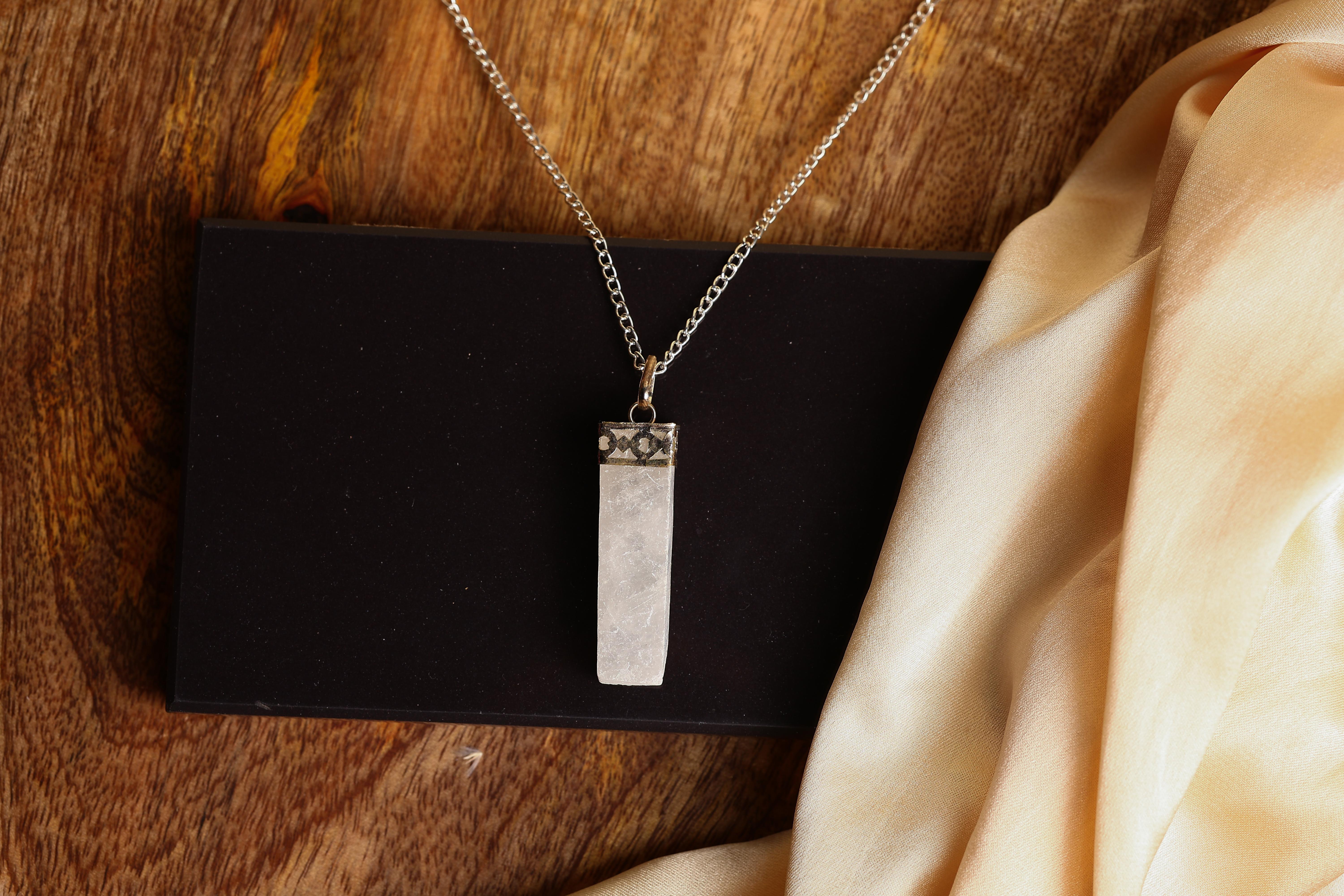 Selenite Pendant cleanses energy, promotes peace, and enhances spiritual connection. A high-vibration crystal for purity and light.