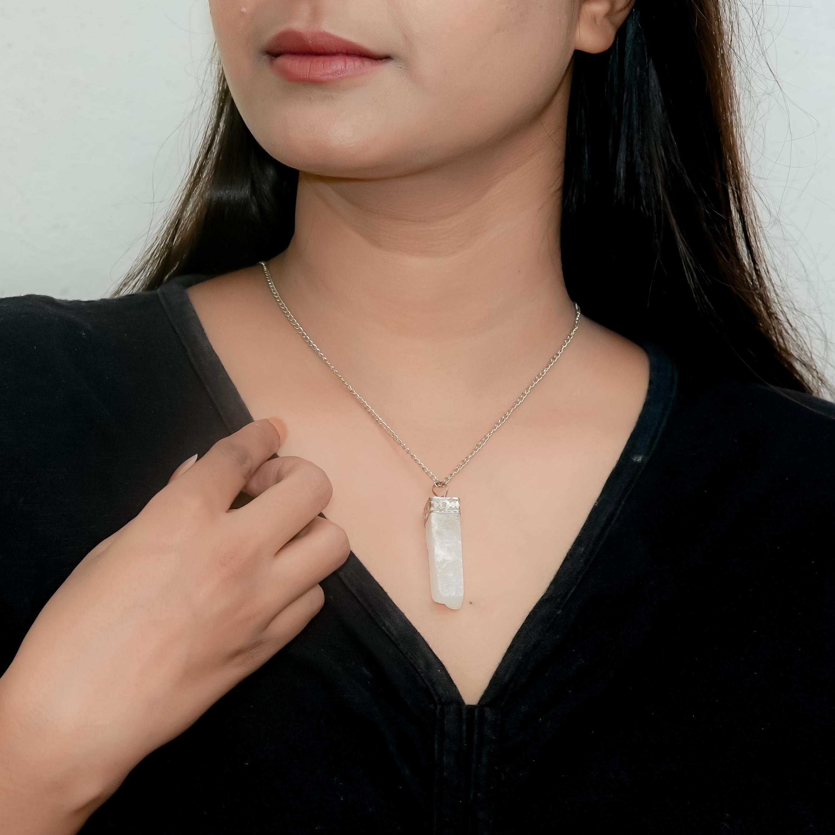 Selenite Pendant is a powerful cleansing crystal that clears negative energy and restores harmony. Worn as a pendant, it aligns you with higher vibrations, supports meditation, and enhances clarity. Known for connecting with angelic realms, it opens the crown chakra and creates a protective shield of peace. Perfect for daily spiritual balance and aura cleansing.