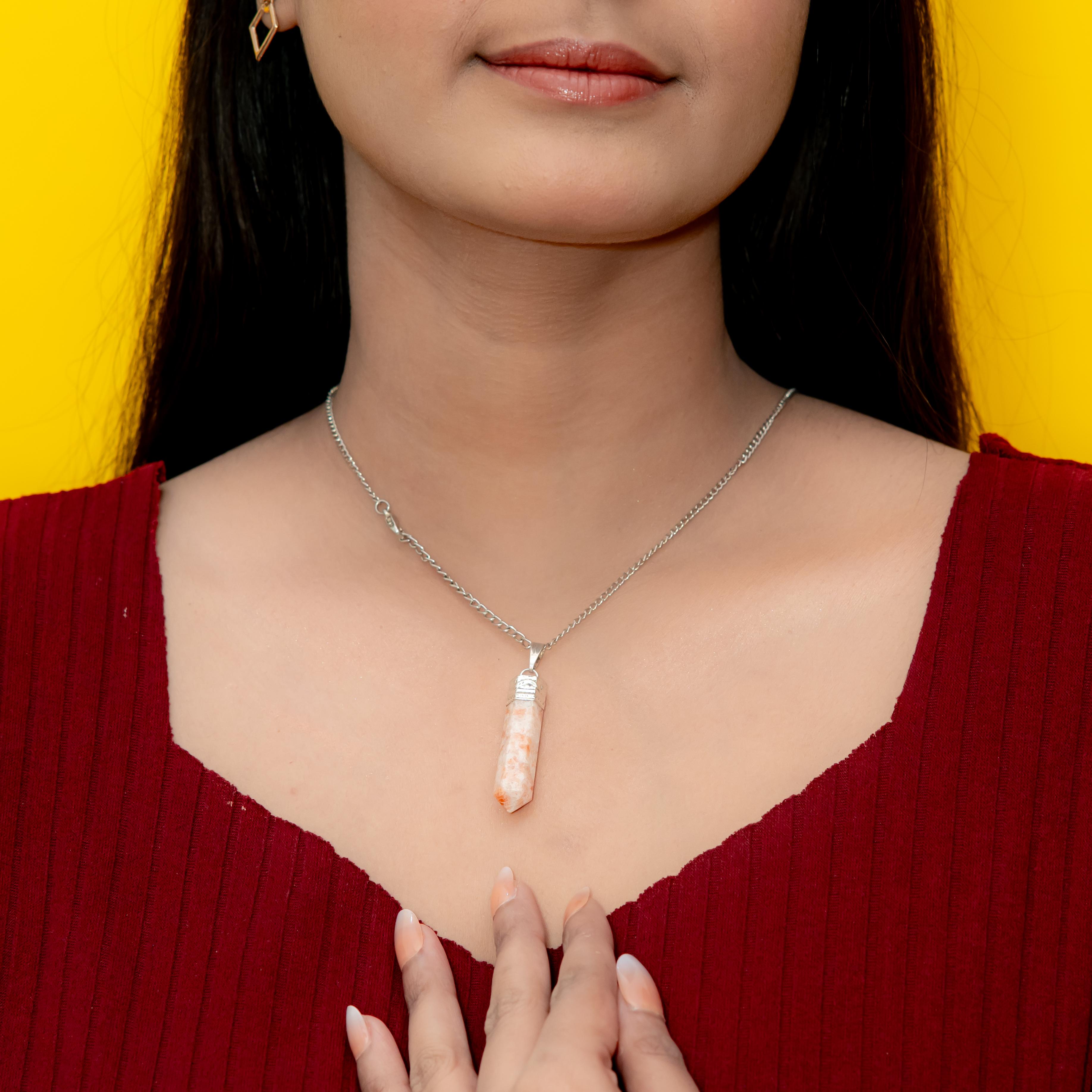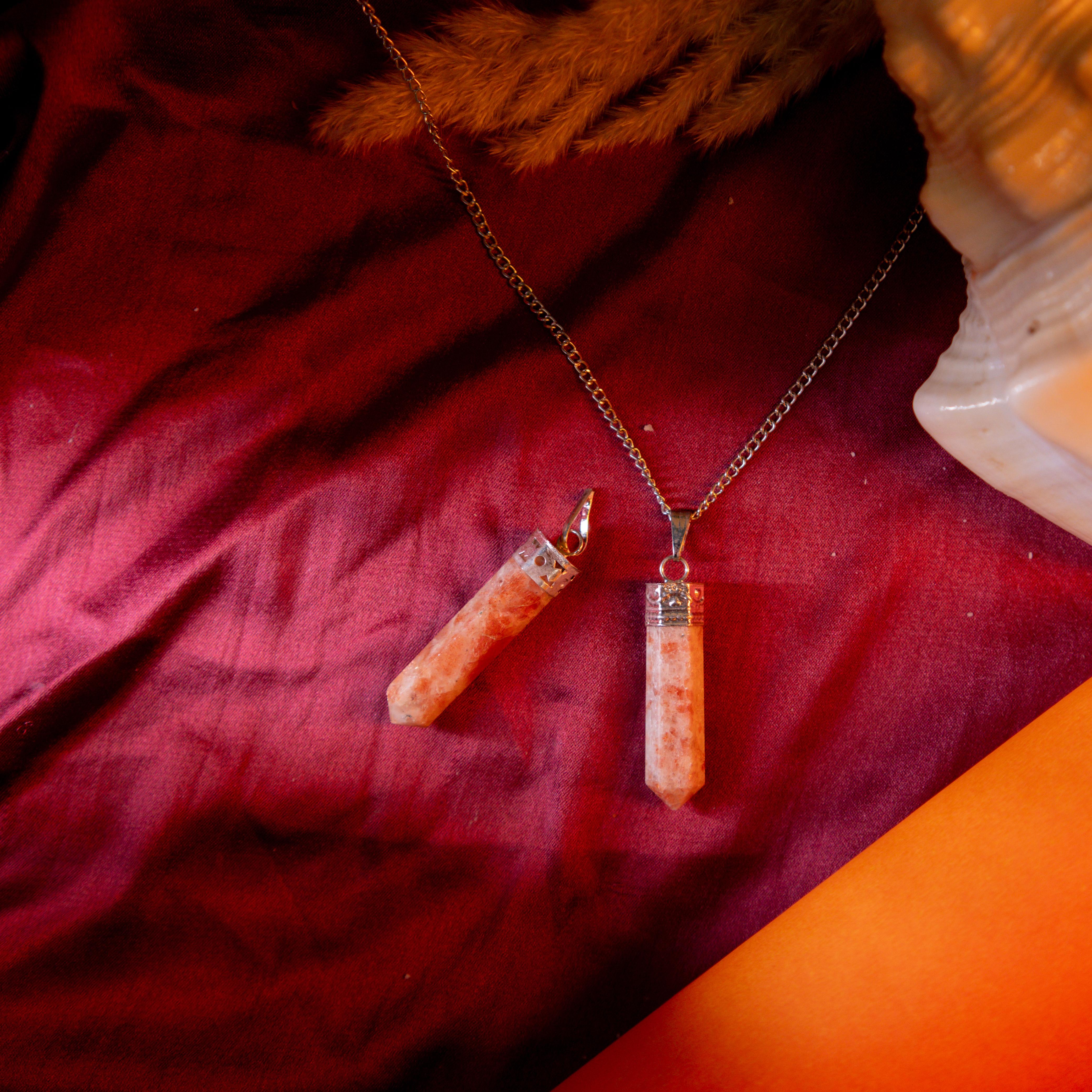Sunstone Pencil Pendant energizes the spirit, boosts creativity, and strengthens confidence. A stone of joy and vitality.