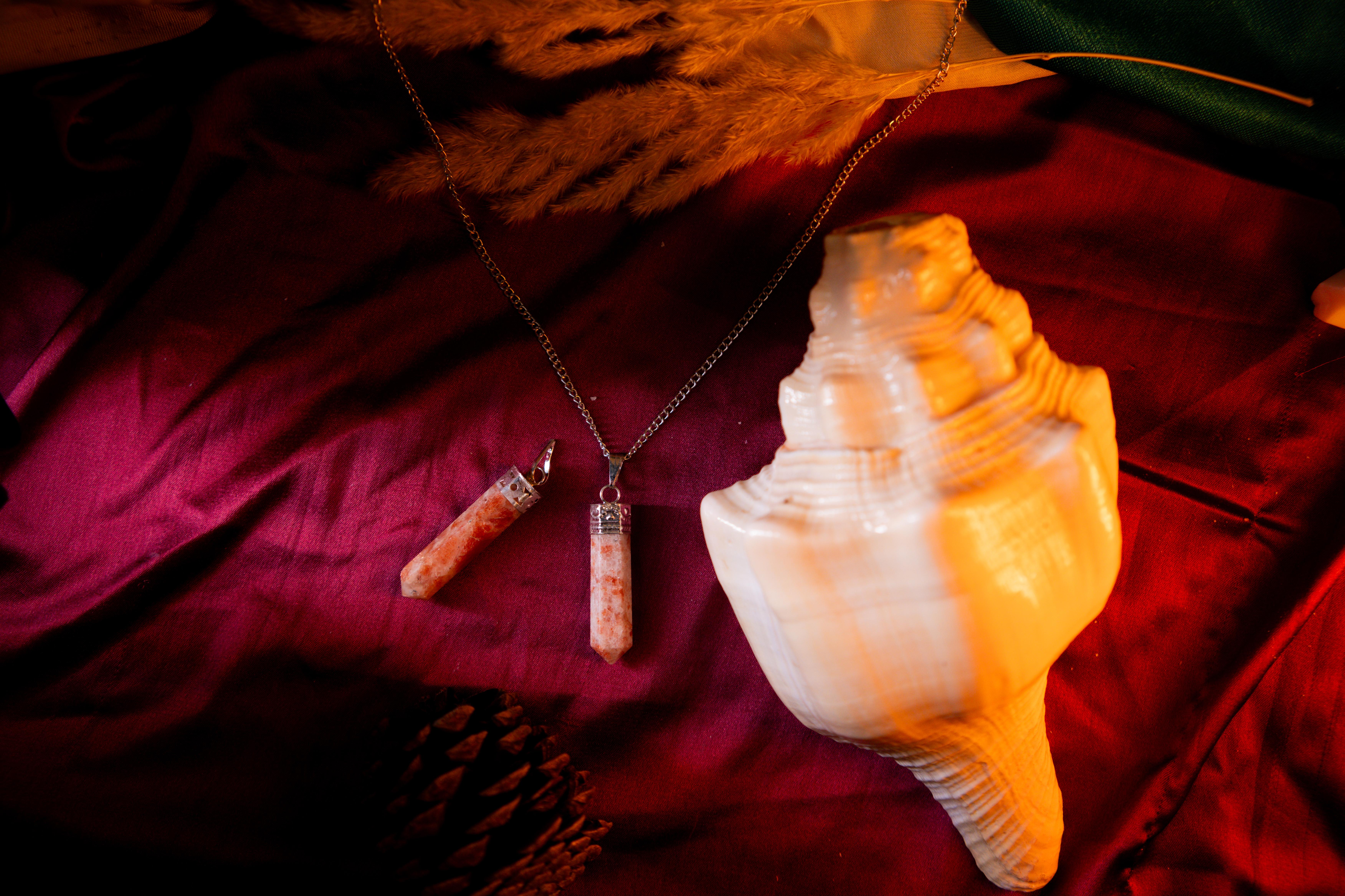The Sunstone Pencil Pendant channels energy directly through its pointed shape, amplifying motivation, courage, and creative expression. Connected to the sacral and solar plexus chakras, it inspires leadership, attracts success, and fosters independence. Its radiant energy dispels negativity, uplifts mood, and enhances enthusiasm, making it perfect for those seeking empowerment and positivity in life.